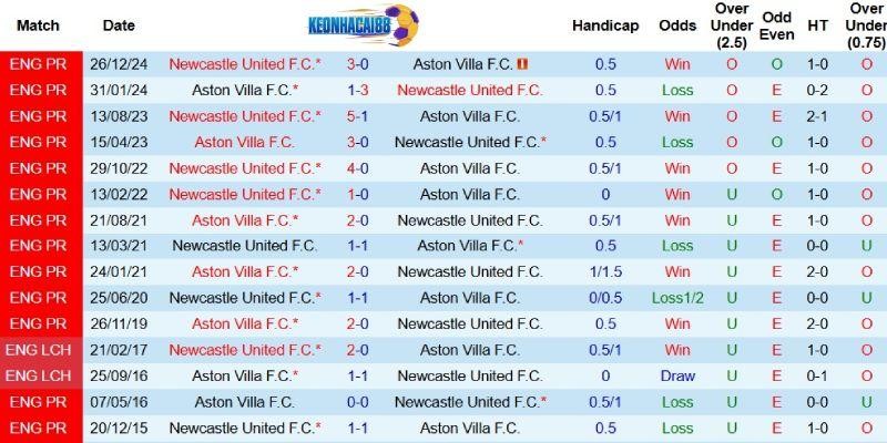 Nhờ điểm tựa sân nhà, Aston Villa được nhà cái xếp ở cửa trên và chấp Newcastle 0,25. Đây là mức kèo phản ánh khá chính xác tương quan hai đội lúc này.